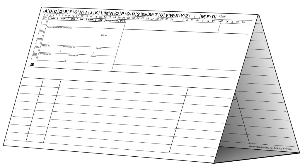 • Aufgebaut wie die klassische Praxis-Karteikarte.